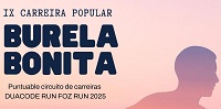 A IX Carreira Popular Burela Bonita terá lugar este domingo, día 16 de novembro, a partir de las 11:00 horas sobre un circuíto de 6 quilómetros para a andaina, 200 metros para pícaros, 700 metros para benxamíns, 1.400 metros para alevíns, 2.000 metros para infantís e cadetes e 5.000 metros para a competición absoluta. A saída e a meta estará xunto á praia de O Portelo.
