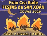 A parroquia de Covas, no municipio de Viveiro, celebrará unha cea baile o día 21 de marzo, sábado. Será ás 22:00 horas e está organizada pola comisión de festas de San Xoán. Para participar hai que retirar os tickets previamente o prazo remata este domingo, 15 de marzo.