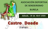 A Asociación Deportiva de Sendeirismo Pasada das Cabras, de Burela, fará a ruta do Castro de Doade, no municipio de Lalín (Pontevedra), o día 18 de abril, sábado. O prezo é de 30 euros para os socios do colectivo organizador e de 40 euros para os que non o son. Inclúe autobús, comida e seguro. A saída será ás 07:30 horas desde a estación de autobuses de Burela.