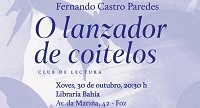 Este xoves, día 30 de outubro, ás 20:30 horas vai estar na Libraría Bahía, de Foz, o escritor Fernando Castro Paredes para falar sobre a súa última novela, O lanzador de coitelos, coa que gañou o premio Galaxia 75 aniversario, “un premio puntual có que a editorial Galaxia quixo celebrar unha efemérides tan importante. Trátase dunha novela de gran talento literario, que cós recursos da novela negra indaga sobre a identidade, a arte e as paixóns dos seres humanos” explica Libraría Bahía, que engade: “Fernando Castro naceu na veciña Tapia de Casariego, é dramaturgo e actor; antes de esta novela, ademais de obras de teatro, tiña escrito un libro de relatos, titulado Entomoloxía para misioneiros”.