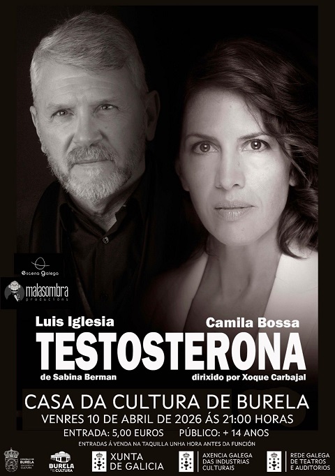 O Concello de Burela anuncia que é “unha proposta escénica que mestura comedia e reflexión arredor dun tema de plena actualidade como é a desigualdade laboral por cuestión de sexo. A obra de Sabina Berman, dirixida por Xoque Carbajal, parte dunha situación sinxela pero cargada de significado. O director dun importante medio de comunicación debe decidir quen ocupará o seu posto entre dúas persoas candidatas, un home e unha muller. A partir deste punto, o espectáculo afonda en cuestións como a capacidade profesional, a experiencia, o talento ou os prexuízos, poñendo o foco nas dificultades ás que se enfrontan as mulleres á hora de acceder a postos de responsabilidade. Testosterona propón unha mirada crítica á sociedade actual, cuestionando os modelos de poder tradicionalmente establecidos e as expectativas que recaen sobre homes e mulleres no ámbito laboral. Faino, ademais, cun ton accesible e cheo de humor, o que permite que o público se achegue a esta realidade dende unha perspectiva entretida, pero tamén reflexiva”.