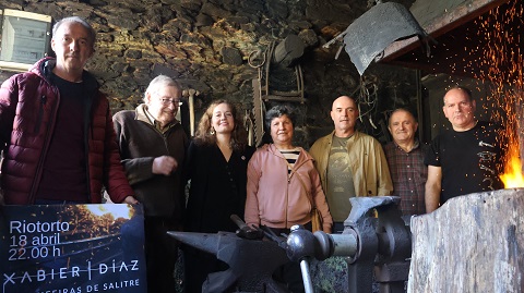 O músico coruñés visitou este venres forxa de Agustín de Faustino, un dos ferreiros en activo, onde coñeceu os detalles deste oficio artesán e a súa tradición en Riotorto. Tamén compartiron lembranzas sobre informantes do concello que Xabier Díaz coñeceu durante as súas recollidas como Daniel e Eugenio Fernández -os de Baltasar- ou sobre o tear de Elena Rodríguez, de Xudán (A Pontenova), que fixo as borlas dunha das súas primeiras gaitas.