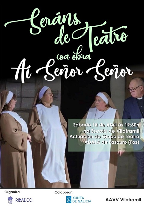 Dentro do programa Seráns de Teatro, que organiza o Concello de Ribadeo, o grupo de teatro A Adala, de Fazouro (Foz), representará a obra titulada Ai señor señor na parroquia ribadense de Vilaframil.