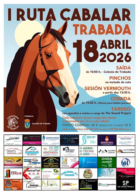 Trabada acollerá o vindeiro 18 de abril a celebración da I Ruta Cabalar, unha nova iniciativa organizada pola asociación Cabaleiros de Trabada, un colectivo de recente creación no municipio que conta coa colaboración do propio Concello.