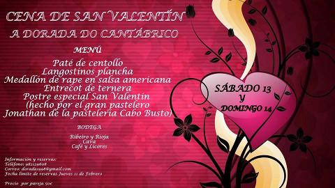 Y para celebrar el Día de los Enamorados en A Dorada do Cantábrico habrá cena especial San Valentín los días 13 y 14, sábado y domingo. El menú está compuesto por paté de centollo, langostinos a la plancha, medallón de rape en salsa americana, entrecot de ternera y postre especial San Valentín elaborado por Jonathan, de la pastelería Cabo Busto. También incluye vinos Ribeiro y Rioja, cava, café y licores. El precio es de 50 euros por pareja.