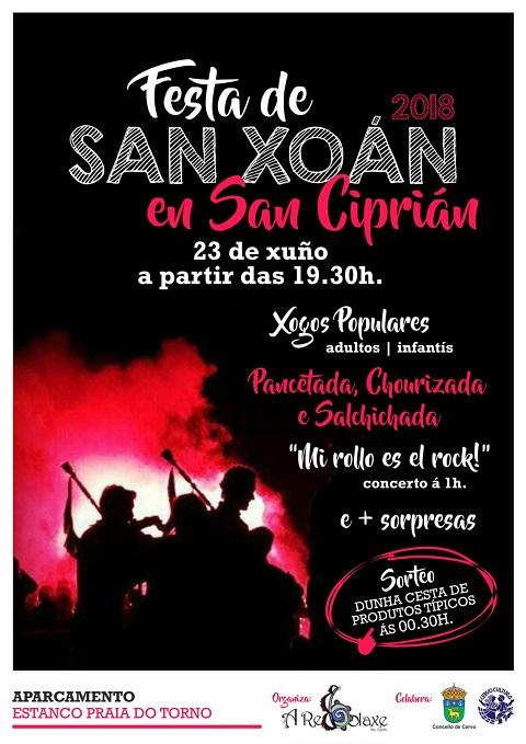 A festa de San Xoán en San Ciprián celebrarase o sábado, 23 de xuño, a partires das 19:30 horas.