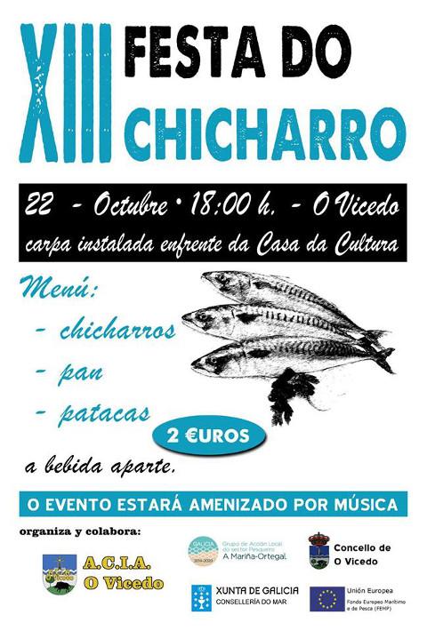 O 22 de outubro celébrase en O Vicedo a XIII Festa do Chicharro. A degustación dará comezo ás 18:00 horas e terá lugar na carpa instalada a carón da Casa da Cultura.