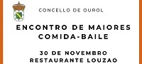 O Concello de Ourol está a organizar un Encontro de Maiores, para persoas de máis de 55 anos empadroadas no municipio. Terá lugar este domingo, día 30 de novembro, no Restaurante Louzao (Viveiro) ás 14:00 horas.