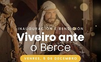 O Concello de Viveiro inaugura este venres, día 5 de decembro, o tradicional belén xigante Viveiro ante o Berce. A programación dará comezo ás 18.30 horas co acendido das luces de Nadal na Praza Maior. A continuación, ás 19.00 horas, levarase a cabo a inauguración oficial do belén no adro de Santa María. Para completar a xornada, arredor das 19.30 horas, ofrecerase unha chocolatada na Praza Maior.