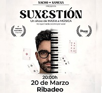 O Concello de Ribadeo anuncia: “a mente xoga. A música guía. Nada acontece por casualidade. Nacho Samena presenta un espectáculo diferente: maxia e música mesturadas nunha experiencia coidada ao detalle, sorprendente e elegante. Non é só un show, é algo que tes que vivir en directo”. Ademais explica que Suxestión “é o novo espectáculo de Nacho Samena onde a maxia e o piano se dan a man nunha experiencia familiar, sorprendente e chea de humor. Un show participativo no que o público xoga, decide e se deixa sorprender cos números de maxia, a música en directo e o humor de Nacho Samena, que é subcampión de España de cartomaxia e pianista internacional...