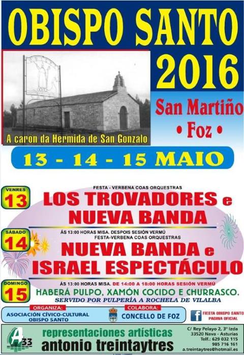 A romaría de Obispo Santo, que terá lugar a carón da Hermida de San Gonzalo, está organizada pola Asociación Cívico-Cultural Obispo Santo e conta coa colaboración do Concello de Foz.