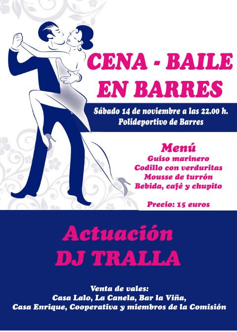 La Comisión de Fiestas de Barres organiza el 14 de noviembre una cena-baile en el polideportivo de la localidad. El evento empieza a las 22 horas y el precio de la entrada es de 15 euros por persona.