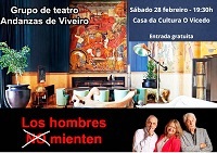 O grupo Andanzas, de Viveiro, representará a obra titulada Los hombres no mienten, este sábado, día 28 de febreiro, ás 19:30 horas na Casa da Cultura do Vicedo.
