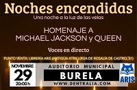 leer másO Auditorio Municipal de Burela será o escenario do espectáculo titulado Noches Encendidas: Una noche a la luz de las velas o día 29 de novembro, sábado, ás 20:00 horas. É “un evento que renderá homenaxe a dúas das figuras máis icónicas da historia da música: Michael Jackson e Queen. O espectáculo, organizado por La Opción Producciones e Diverfest, contará con voces en directo e unha posta en escena iluminada por velas”, anuncia o Concello de Burela.