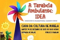 A compañía Tarabela Creativa representará a obra titulada A Tarabela Ambulante: IDEA este martes, día 30 de decembro, en Burela. Será na Casa da Cultura ás 18:00 horas.
