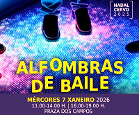 O Concello de Cervo anuncia que a actividade prevista para pechar a programación deste Nadal terá lugar na Praza dos Campos, de San Ciprián, este mércores, 7 de xaneiro: “alfombras de baile, para pasar un anaco ben divertido!”.