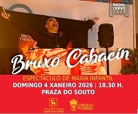 O Bruxo Cabacín ofrecerá un espectáculo de maxia infantil en Cervo este domingo, día 4 de xaneiro. Será ás 18:30 horas na Praza do Souto.