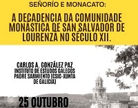 Vilanova de Lourenzá acollerá este sábado, día 25 de outubro, unha charla sobre a historia do mosteiro de San Salvador a cargo de Carlos Andrés González Paz, historiador e investigador do Instituto de Estudos Galegos Padre Sarmiento. Falará de Señorío e monacato: A decadencia da comunidade monástica de San Salvador de Lourenzá no século XII.