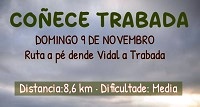 O Concello de Trabada continúa coa súa aposta polo sendeirismo e a posta en valor do patrimonio natural e paisaxístico do municipio a través do programa Coñece Trabada. Neste marco anúnciase unha nova ruta a pé que terá lugar o domingo 9 de novembro, con saída desde Vidal e chegada a Trabada.