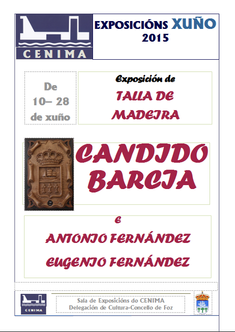 E ás 11 e media da mañá será inaugurada unha mostra de talla de madeira de Cándido Barcia, veciño de Cangas de Foz, na que colaboran expoñendo Antonio Fernández e Eugenio Fernández. Esta mostra estará aberta ata o día 28 deste mes.