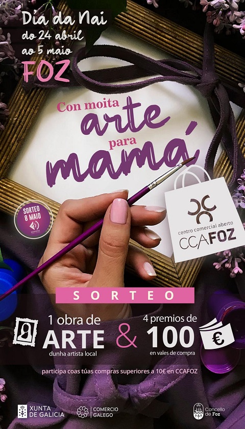 O presidente de Acia Foz-CCA, José Carlos Paleo, animou a facer as compras da esa data no comercio local: “en Foz contamos cun comercio moi variado no que atopar todo o que precisamos para agasallar e sorprender ás mamás o vindeiro 3 de maio”. E explicou que “aquelas persoas que fagan as súas compras no comercio de Foz entre o 24 de abril e o 5 de maio entrarán no sorteo dunha obra de arte doada por unha artista local e 400 euros en vales de compra, repartidos en catro premios de 100 euros cada un”. O sorteo terá lugar o 8 de maio en Radio Foz.