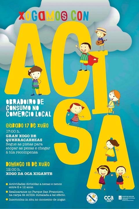 A Asociación de Industriais, Comerciantes e Autónomos (ACISA) organiza en Ribadeo un obradoiro de consumo no comercio local dirixido aos máis novos. Esta actividade que se desenvolverá baixo o lema Xogamos con ACISA, terá lugar os días 17 e 18 de xuño. Con ela ACISA continúa coa súa campaña de promoción do comercio local na que está a traballar estas semanas buscando a fidelización dos clientes nos establecementos asociados.