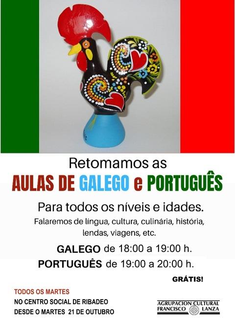 “Van volver as aulas de galego e de portugués da man da nosa compañeira e amiga Dores Fernández Abel. Por favor, quen teña interese ou saiba de amigos/as que estean interesados/as póñanse en contacto connosco para apuntárense, enviando un correo a agrupacionfranciscolanza@gmail.com. Lembrade que son totalmente gratuítas e é unha boa ocasión para familiarizarse coa nosa lingua e/ou co portugués”, anuncia a Agrupación Cultural Francisco Lanza.