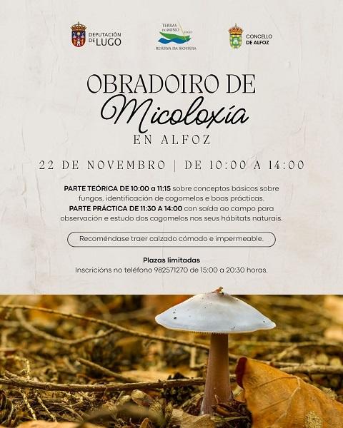 Alfoz acollerá un obradoiro de micoloxía este sábado, día 22 de novembro, de 10:00 a 14:00 horas.