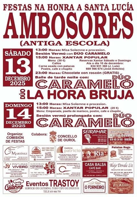 A parroquia de Ambosores, no municipio de Ourol, celebra as festas na honra a Santa Lucía os días 13 e 14 de decembro, sábado e domingo.