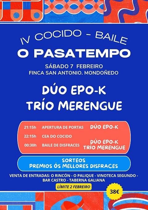 A asociación cultural O Pasatempo organiza unha cea de cocido con baile de disfraces en Mondoñedo para o día 7 de febreiro, sábado.