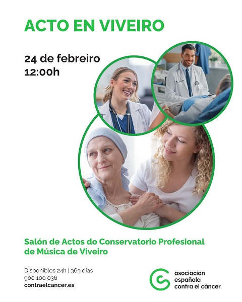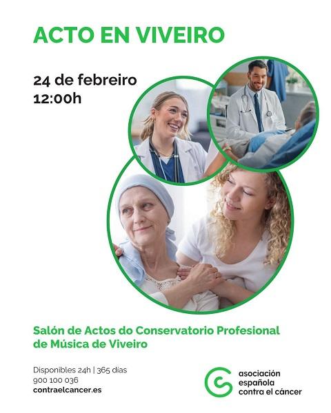 Con motivo do Día Mundial do Cancro, que se conmemorou o 4 de febreiro, celebrarase un acto en Viveiro no que se presentará o novo modelo de atención integral da Asociación Española Contra o Cancro. Será o martes 24 de febreiro ás 12:00 horas no salón de actos do Conservatorio Profesional de Música de Viveiro.