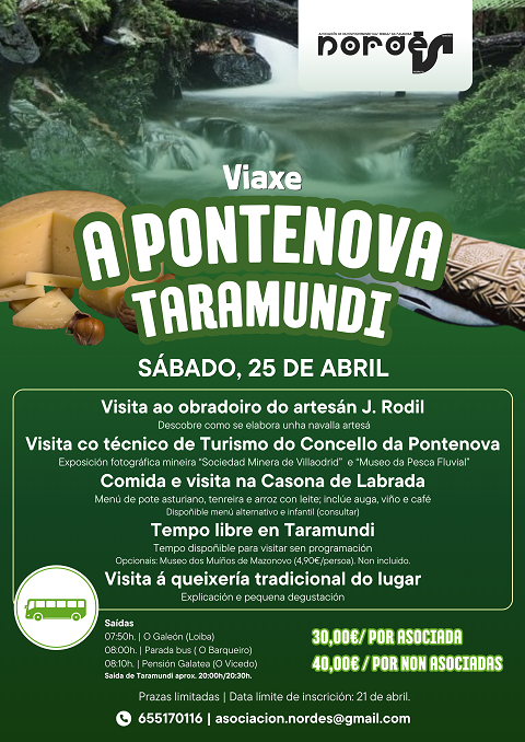 A asociación Nordés vén de anunciar a organización dunha saída cultural para o sábado 25 de abril, cunha proposta que combina patrimonio, tradición e gastronomía entre A Pontenova e Taramundi.