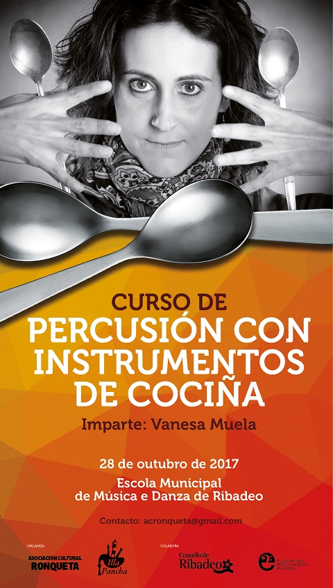 A asociación cultural Ronqueta de Ribadeo, en colaboración co Concello de Ribadeo, organiza un curso de Percusión con Instrumentos de Cociña que terá lugar o 28 de outubro.