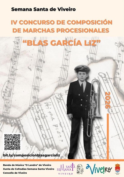 A Banda de Música O Landro, de Viveiro, convoca o IV Concurso de Marchas Procesionais Blas García Liz, no que colaboran o Concello de Viveiro e a Xunta de Cofradías da Semana Santa de Viveiro. A data límite de entrega é o día 9 de xaneiro do ano 2026 ás 23:59 horas.