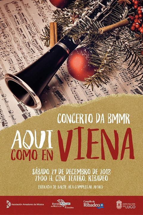 A Banda Municipal de Música de Ribadeo ofrecerá o seu tradicional concerto Aquí como en Viena, este sábado, día 29, ás 21:00 horas no Teatro ribadense. A Banda interpretará polcas, valses e outras pezas típicas destas datas, ademais doutros temas, e haberá sorpresas. A entrada é de balde, pero o aforo a este concerto será limitado por seguridade e comodidade dos asistentes.