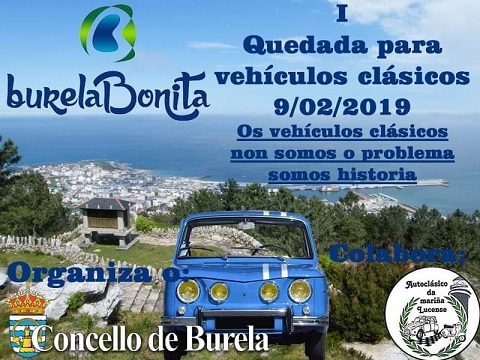 O Concello, en colaboración con AutoClásicos da Mariña Lucense, organiza a I Quedada de Vehículos Clásicos que se celebrará este sábado, 9 de febreiro, na localidade. Os coches estarán de 11 a 14 horas na praza do Concello e despois realizarán unha ruta por Burela. O concelleiro de Turismo, Ramiro Fernández Rey, anima a acudir a ver esta cita na que se darán cita vehículos dos anos 60 e 70.