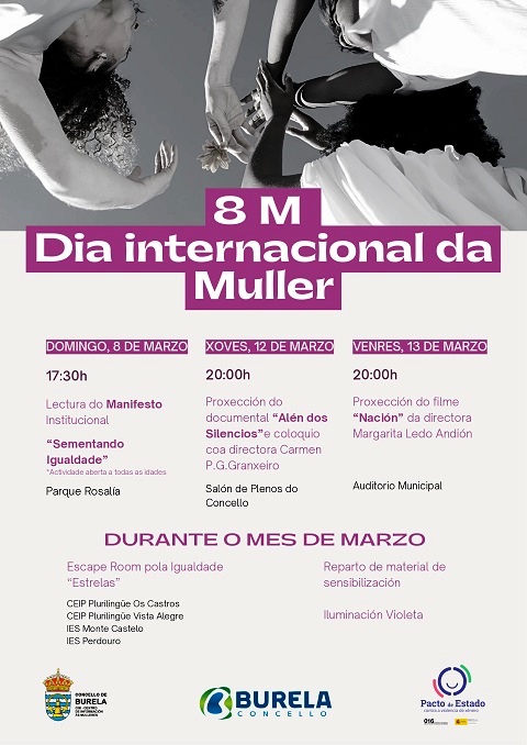 O Concello de Burela conmemora o 8 de marzo, Día Internacional da Muller, cun programa de actividades “aberto á veciñanza e dirixido a diferentes idades, que combina actos institucionais, propostas culturais e accións educativas ao longo do mes”. Serán os días 8, 12 e 13 de marzo