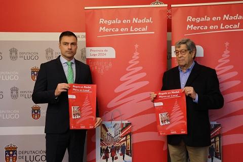 A Deputación de Lugo e a Federación Galega de Comercio poñen en marcha a campaña Regala en Nadal, Merca en Local, unha iniciativa para fortalecer o comercio de proximidade, fomentar o consumo responsable e impulsar a economía local durante unha das tempadas festivas máis importante en vendas do ano. O Deputado de Promoción Económica e Social, PabloRivera, e o Presidente da Federación Galega de Comercio, José María Seijas, presentaron este mércores no Pazo de San Marcos a iniciativa, á que a institución provincial achega 50.000 euros.