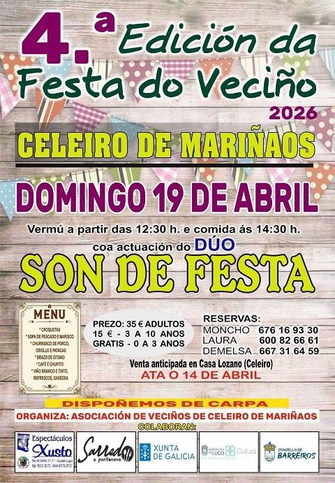 A parroquia de Celeiro de Mariñaos, no municipio de Barreiros, celebrará a cuarta edición da Festa do Veciño o día 19 de abril, domingo.