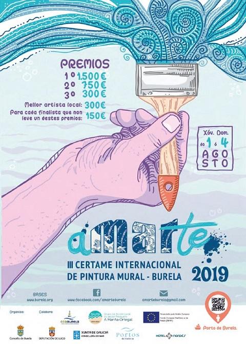 Do 1 de xuño ao 20 de xullo estará aberto o prazo de presentación de traballos á terceira edición de Amarte, o Certame Internacional de Pintura Mural que se desenvolverá do 1 ao 4 de agosto. o concelleiro de Cultura, José Díaz, lembra que a contía dos premios se incrementou nesta edición.