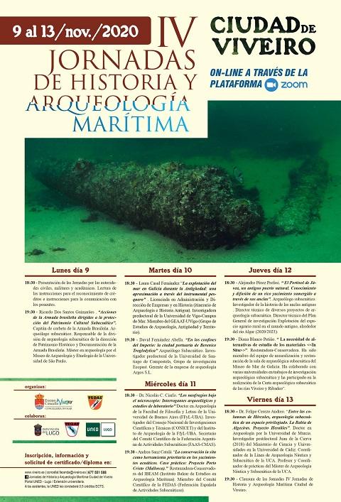 O Concello de Viveiro presentou as IV Xornadas de Historia e Arqueoloxía Marítima Cidade de Viveiro, que se celebrarán do 9 ao 13 de novembro e que este ano, por motivo da pandemia da Covid-19, serán totalmente online a través da plataforma Zoom.