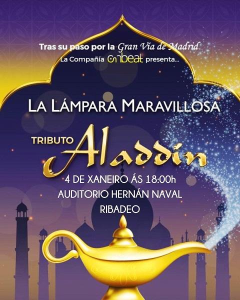 El espectáculo musical titulado La Lámpara Maravillosa: Tributo a Aladdín llega a Ribadeo este domingo, día 4 de enero. Será a las 18:00 horas en el Auditorio Municipal Hernán Naval.