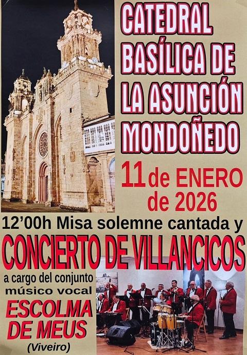 Será en la Catedral Basílica de la Asunción a las 12:00 horas, cuando se celebrará misa solemne cantada y el concierto de villancicos a cargo de Escolma de Meus.
