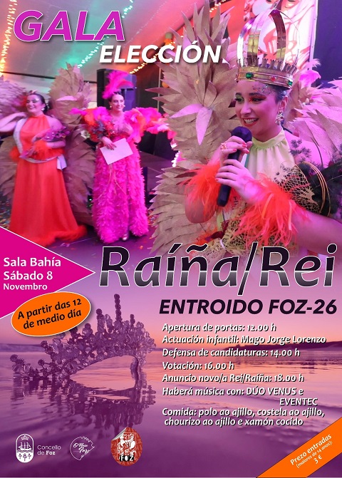 A elección da raíña ou rei do Entroido de Foz será este sábado, 8 de novembro na Sala Bahía
