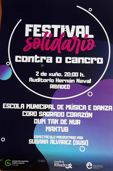 Este venres, 2 de xuño, celébrase en Ribadeo o Festival Solidario contra o Cancro. Terá lugar ás 20:00 horas no Auditorio Hernán Naval.