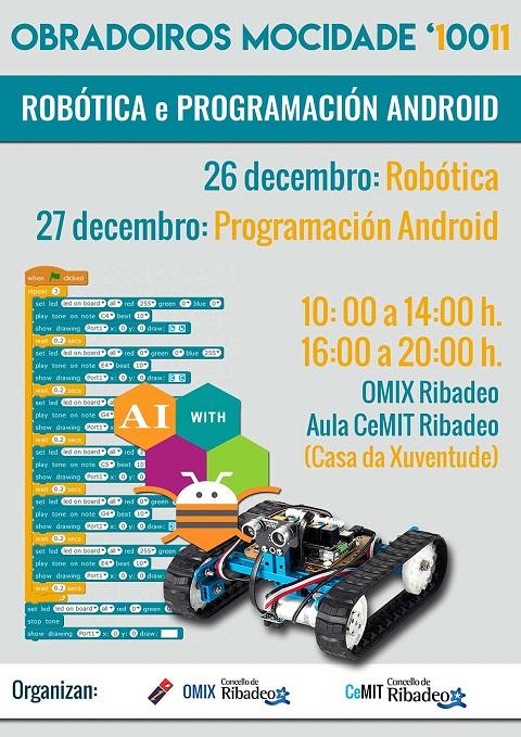 A Concellaría de Mocidade organiza dous obradoiros tecnolóxicos dirixidos aos mozos e mozas ribadenses. Estes talleres serán sobre Iniciación á Robótica e Iniciación á Programación de Móbiles Android.
