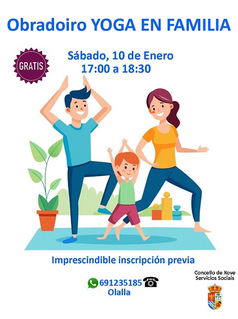 Este sábado, día 10 de enero, habrá en Xove un taller de yoga en familia. Será de 17:00 a 18:30 horas. Es gratis y para participar es imprescindible inscripción previa.