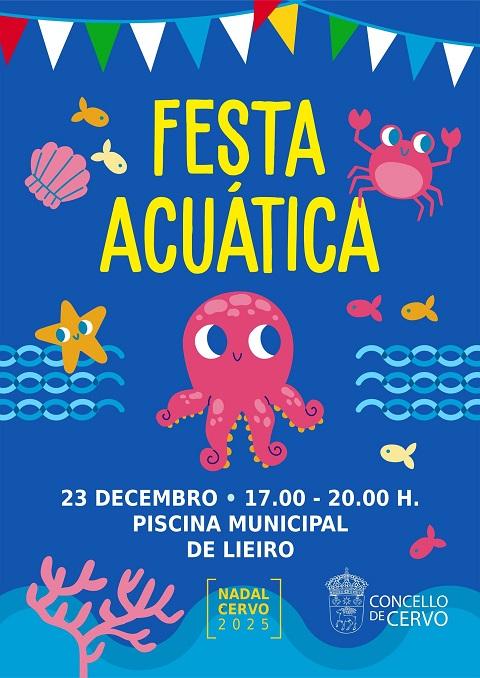 O Concello de Cervo organiza a tradicional festa acuática infantil de Nadal na piscina municipal olímpica de Lieiro este martes, día 23 de decembro, de 17:00 a 20:00 horas.
