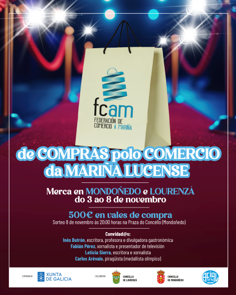 A campaña De compras polo comercio da Mariña Lucense está organizada pola FCAM e conta co financiamento da Dirección Xeral de Comercio da Xunta de Galicia.