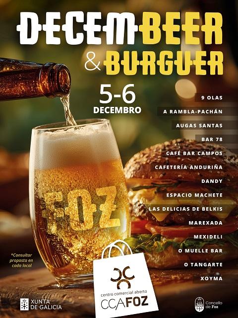 Hamburguesas e cervexas serán as protagonistas en Foz os días 5 e 6 de decembro, venres e sábado, da DecemBeer & Burguer. Na cita participarán 14 locais hostaleiros.